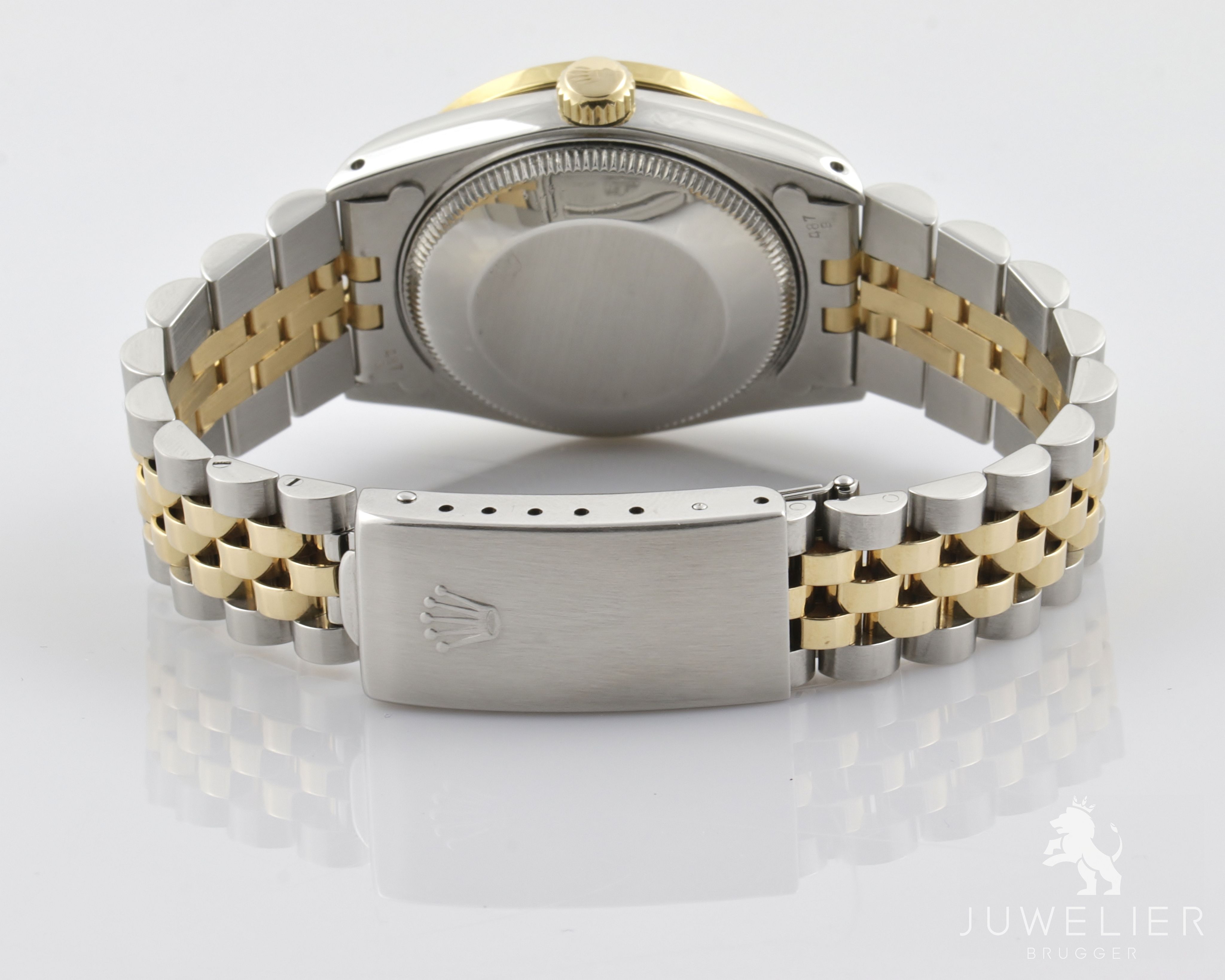 Elegantes Jubileeband aus Edelstahl und Gelbgold – die maximale Länge des Bandes beträgt etwa 17cm, gemessen mit Gehäuse, verstellbar, zusätzliche Glieder erhältlich.