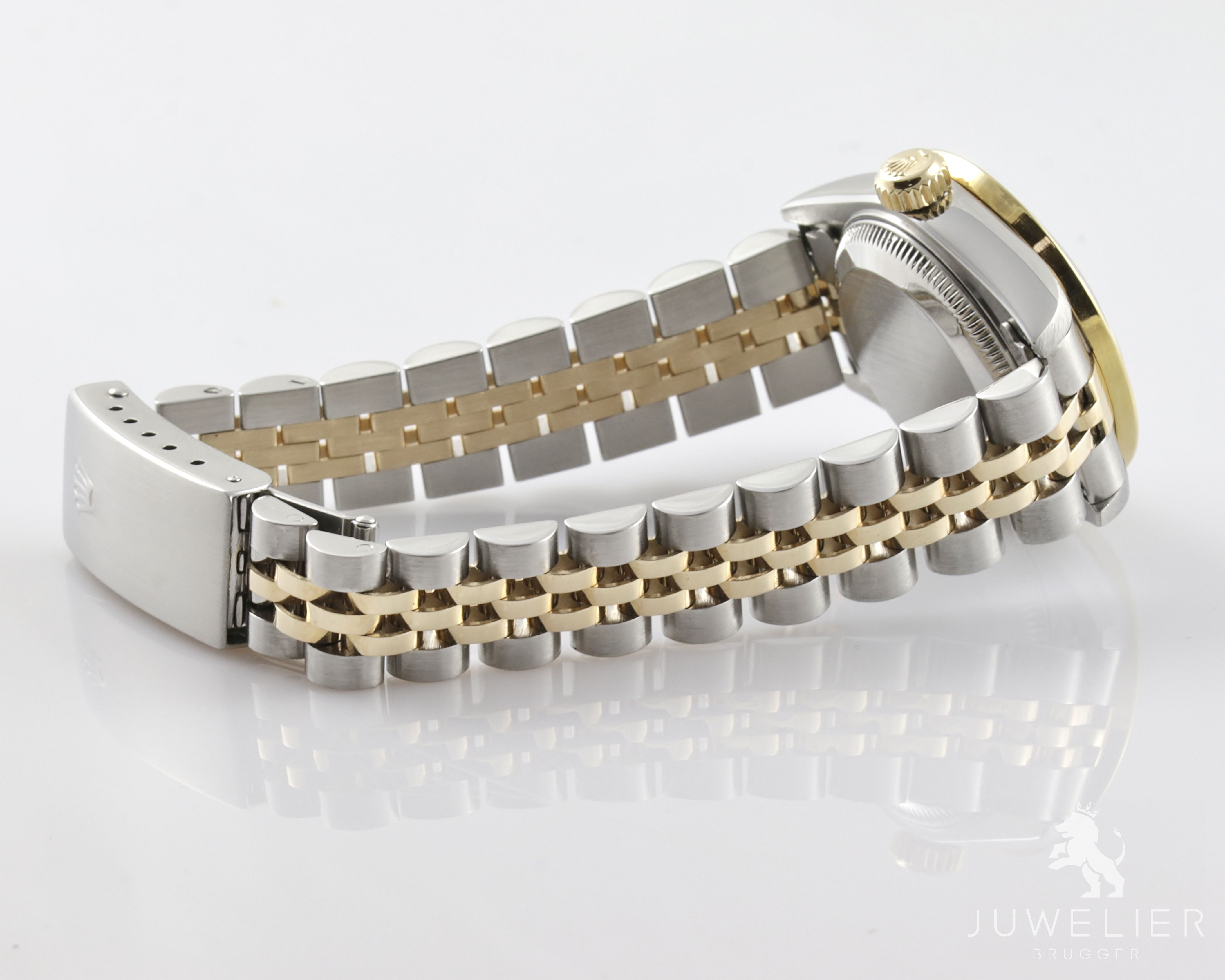 Jubileeband aus Edelstahl und Gelbgold – die maximale Länge des Bandes beträgt etwa 17cm, gemessen mit Gehäuse, verstellbar, zusätzliche Glieder erhältlich.
