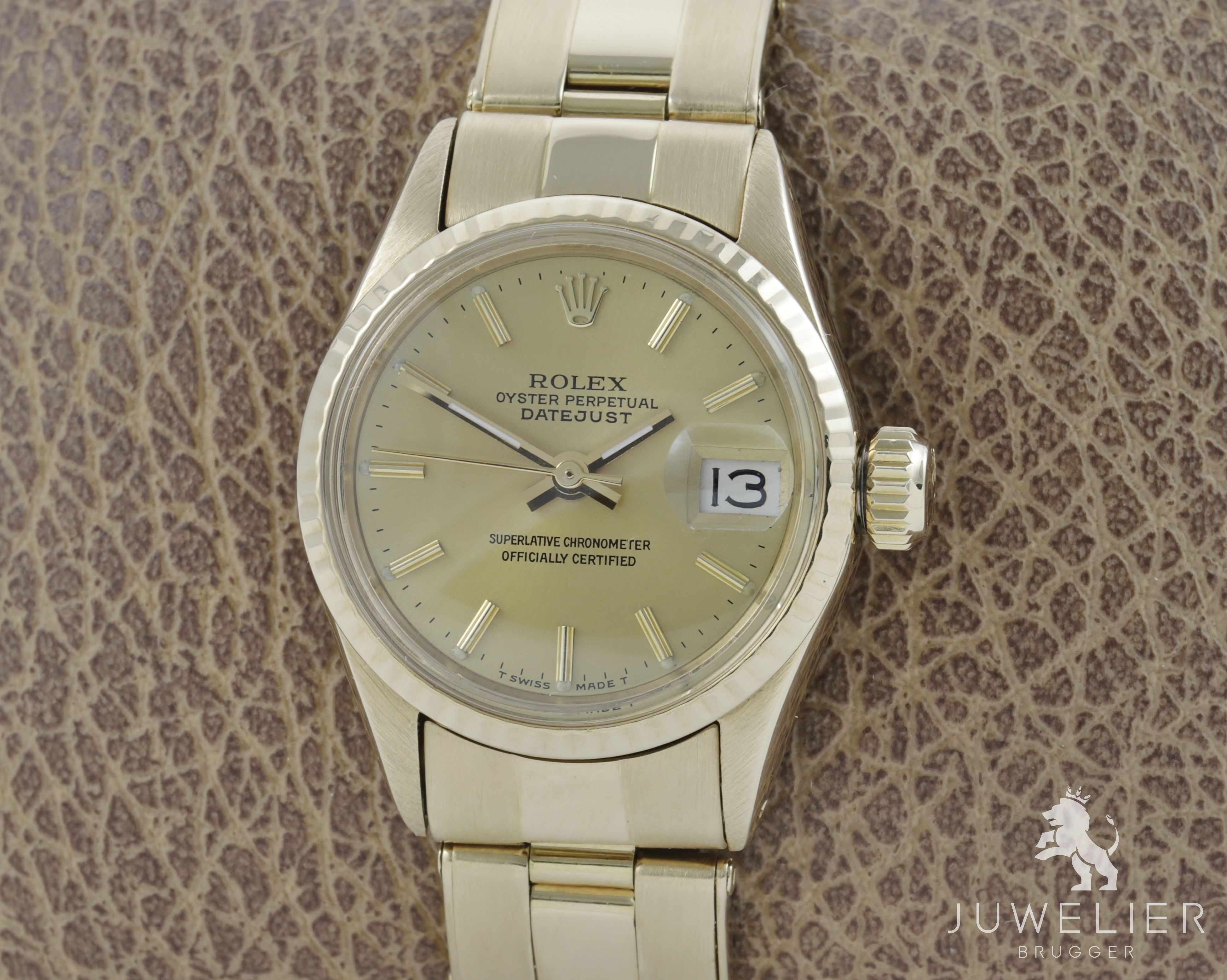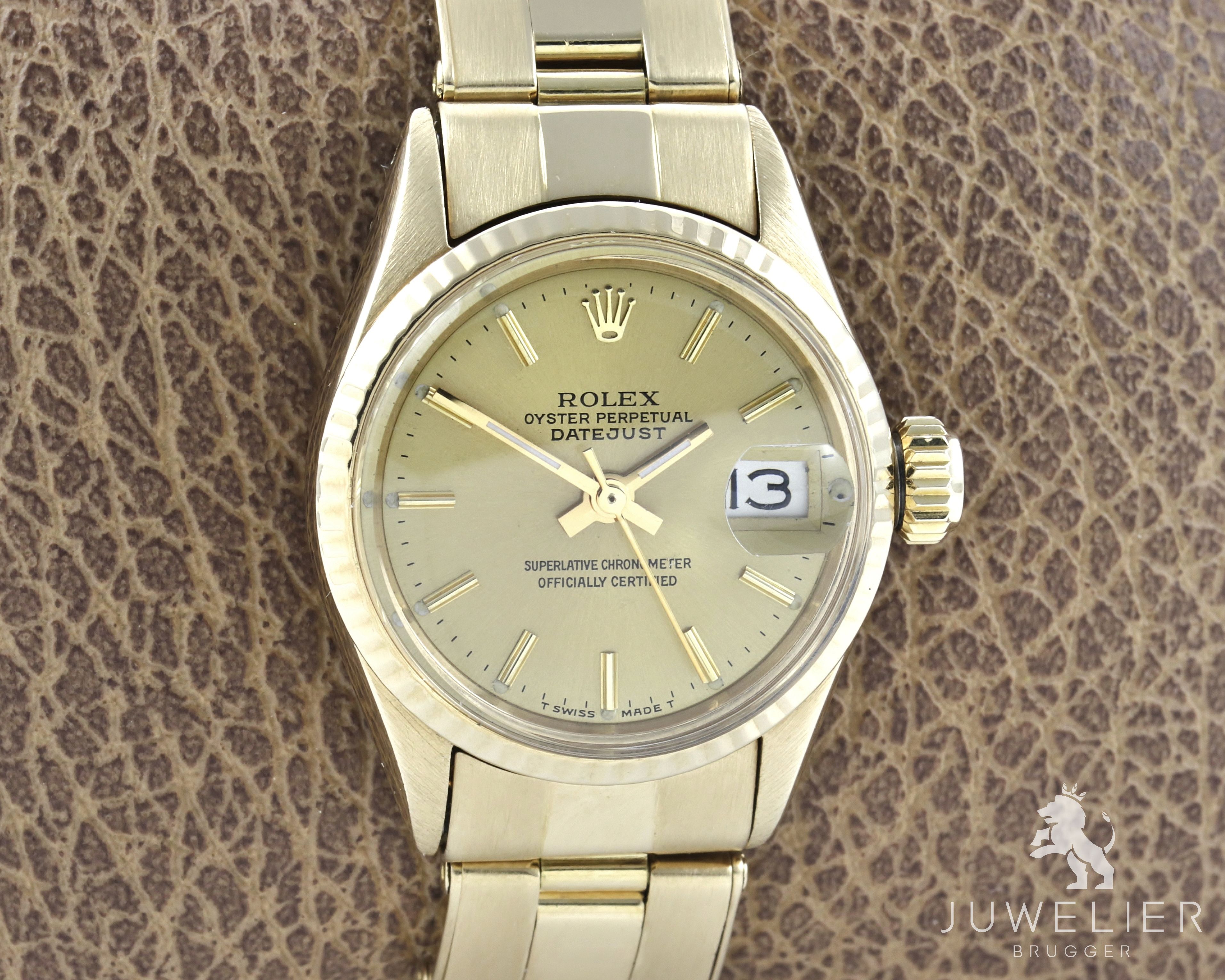 Gehäuse und Band sind aus 18 Karat (750er) Gelbgold.
