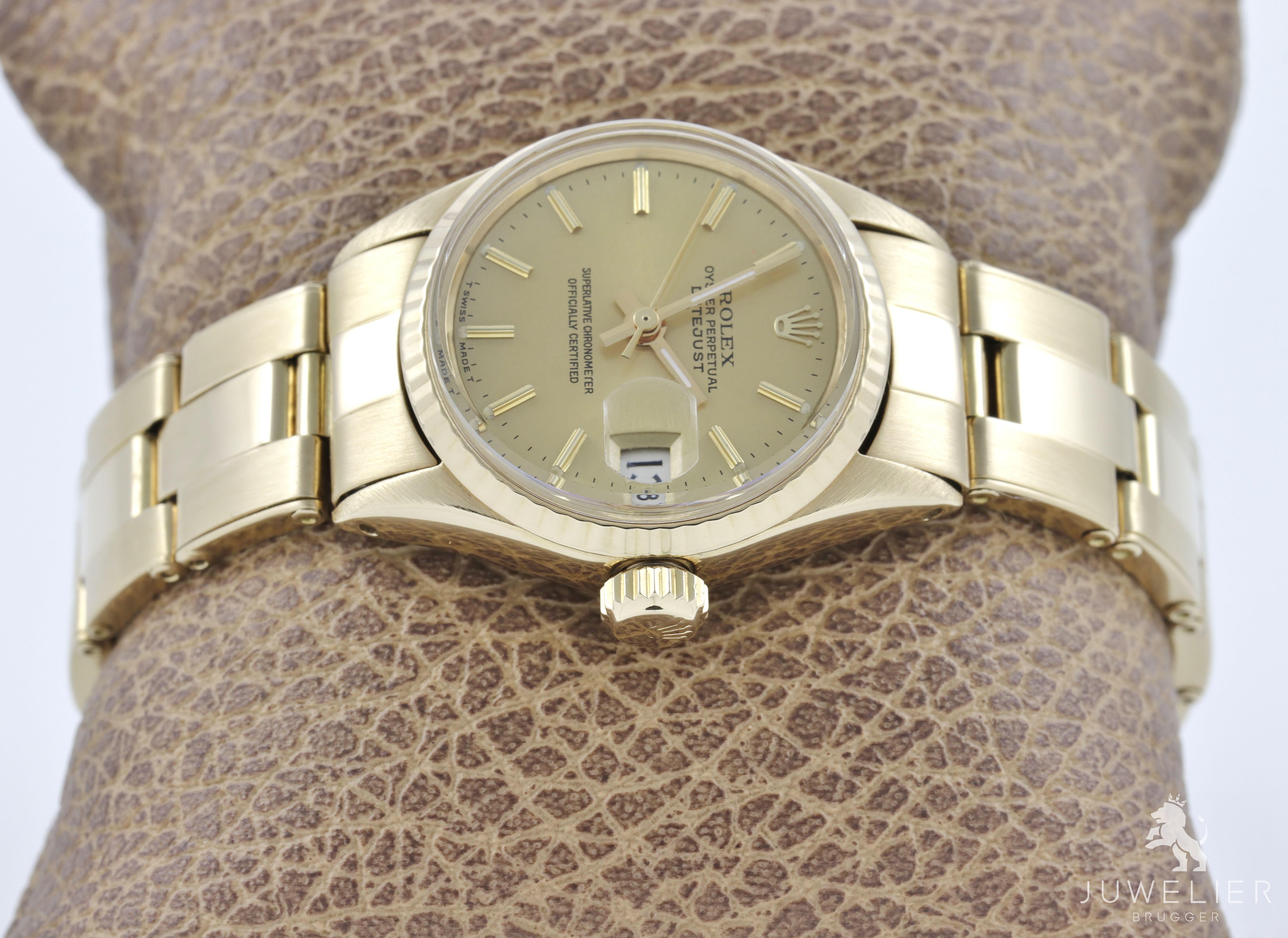 Oyster Nietenband aus Gelbgold mit Faltschließe - max. Länge ca. 170mm, verstellbar, gemessen mit Gehäuse.