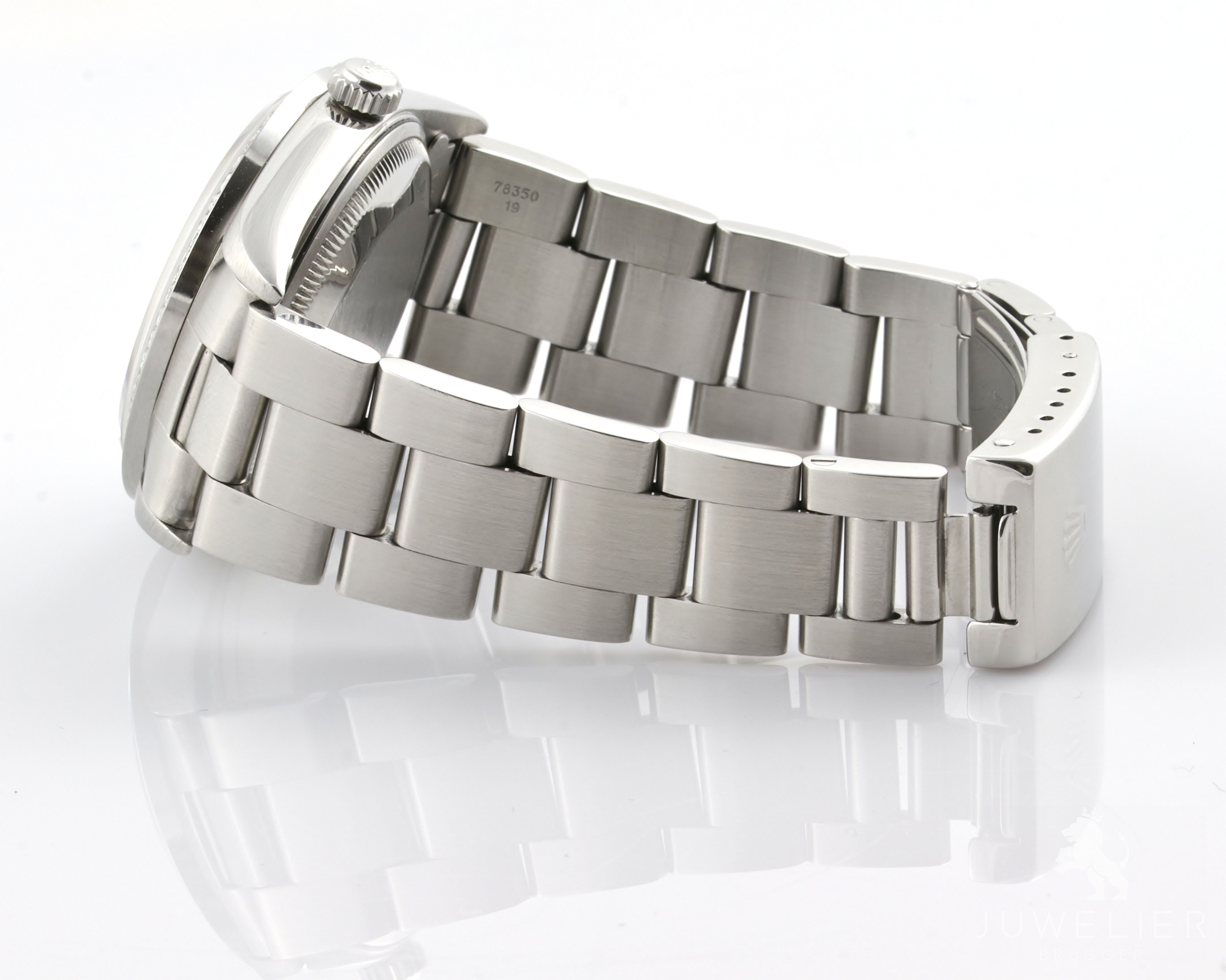 Oysterband aus Edelstahl – die maximale Länge des Bandes beträgt etwa 17,5cm, gemessen mit Gehäuse, verstellbar, zusätzliche Glieder erhältlich.