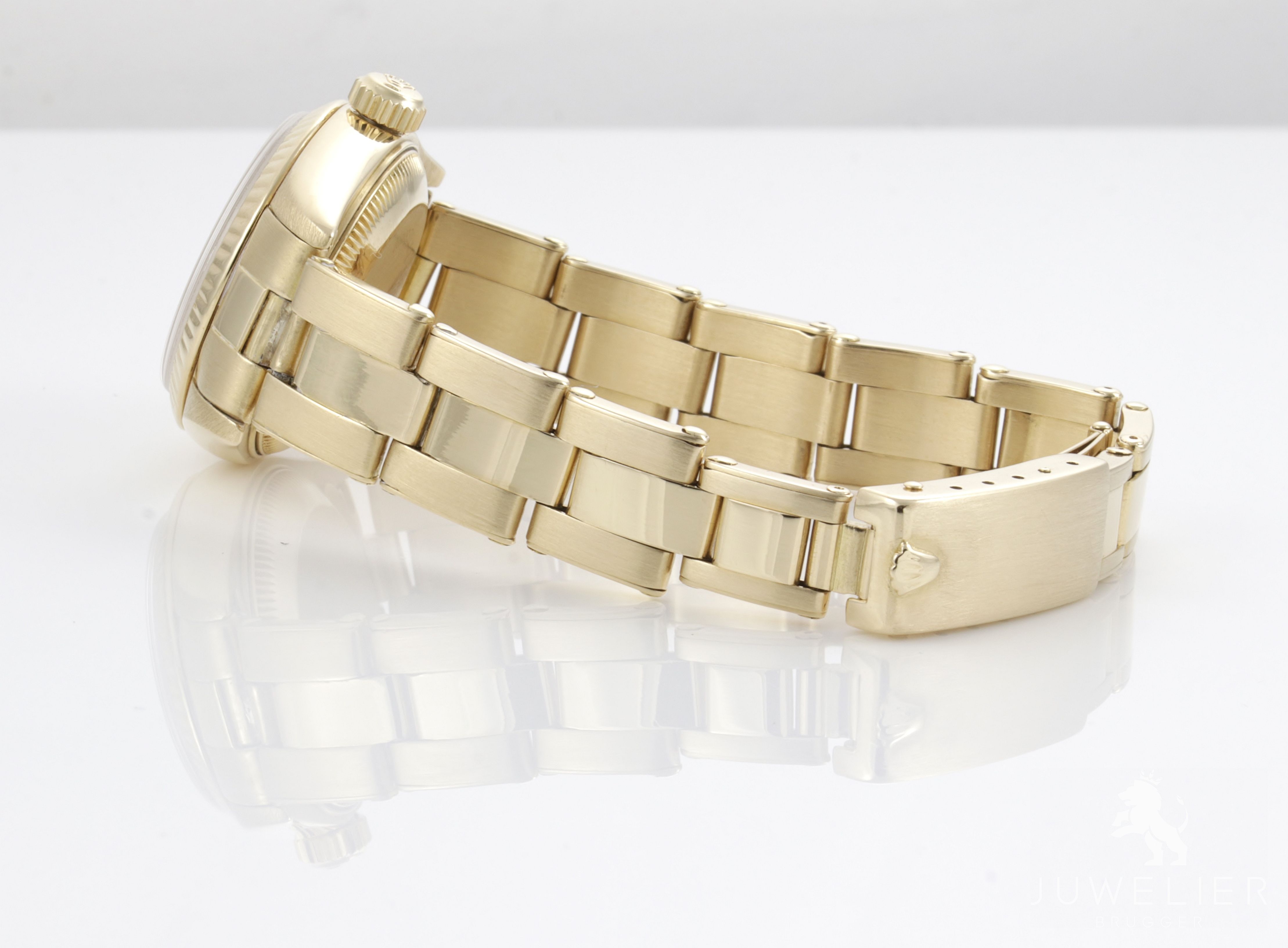Oyster Nietenband aus Gelbgold mit Faltschließe - max. Länge ca. 170mm, verstellbar, gemessen mit Gehäuse.