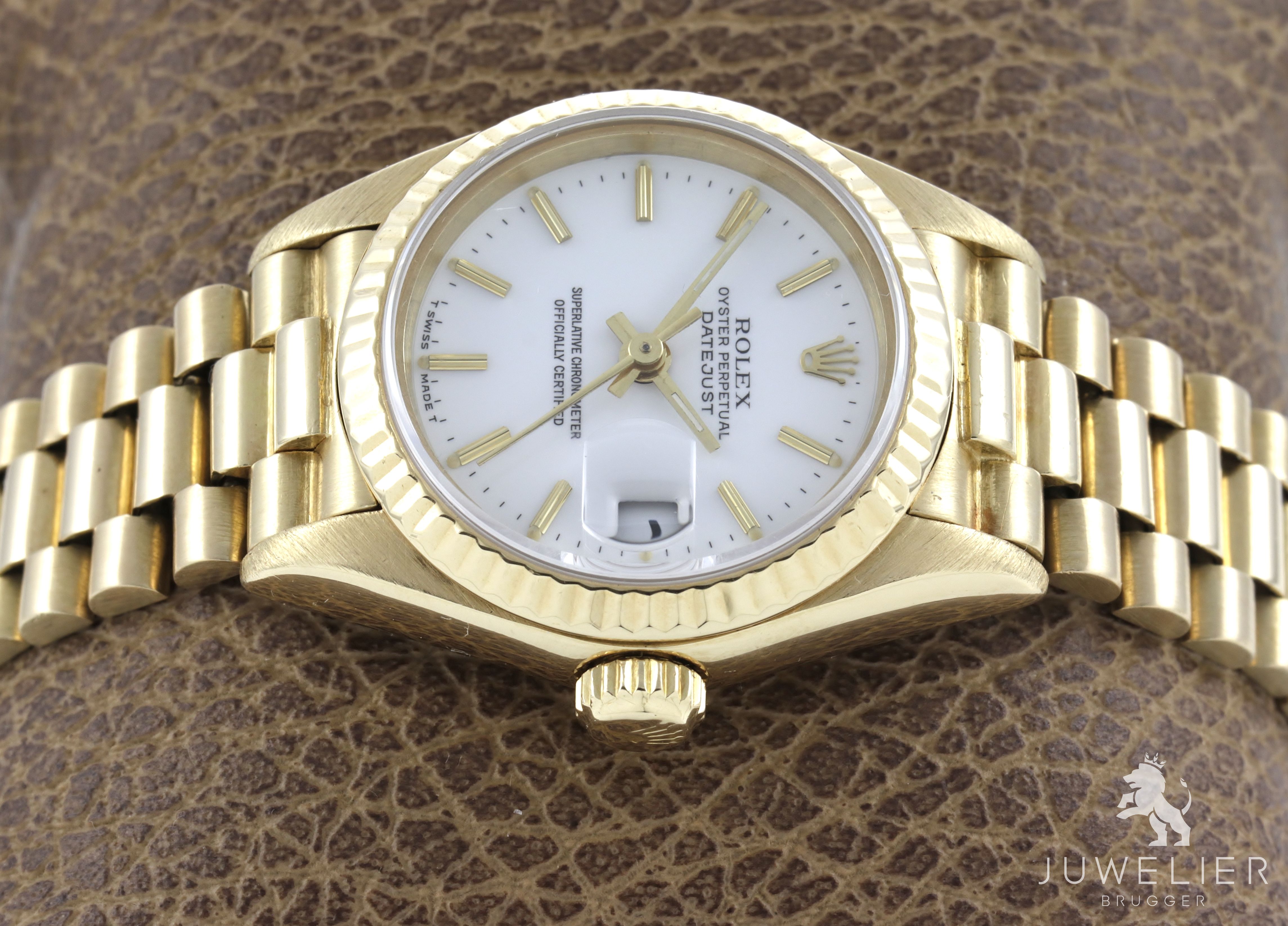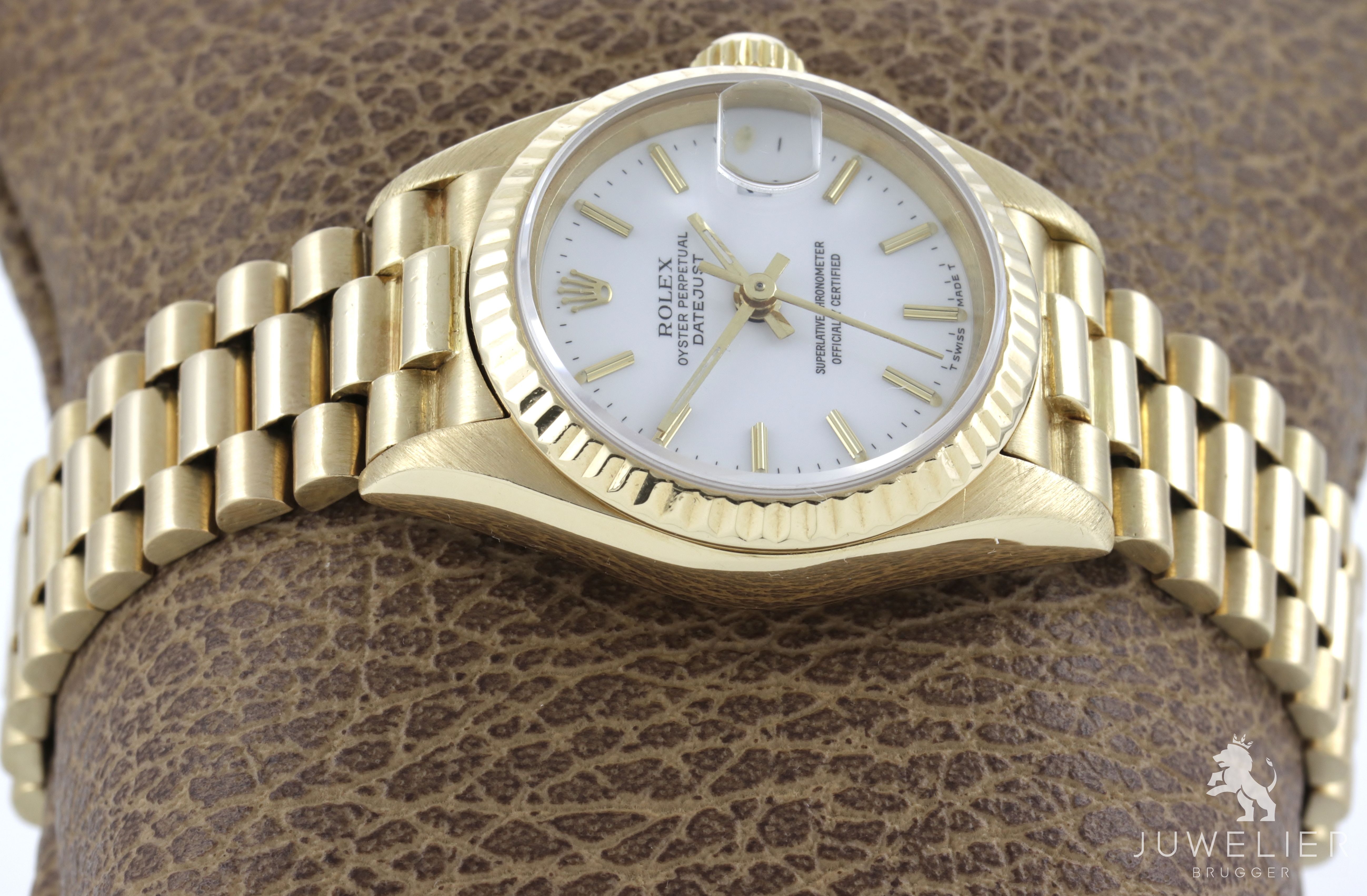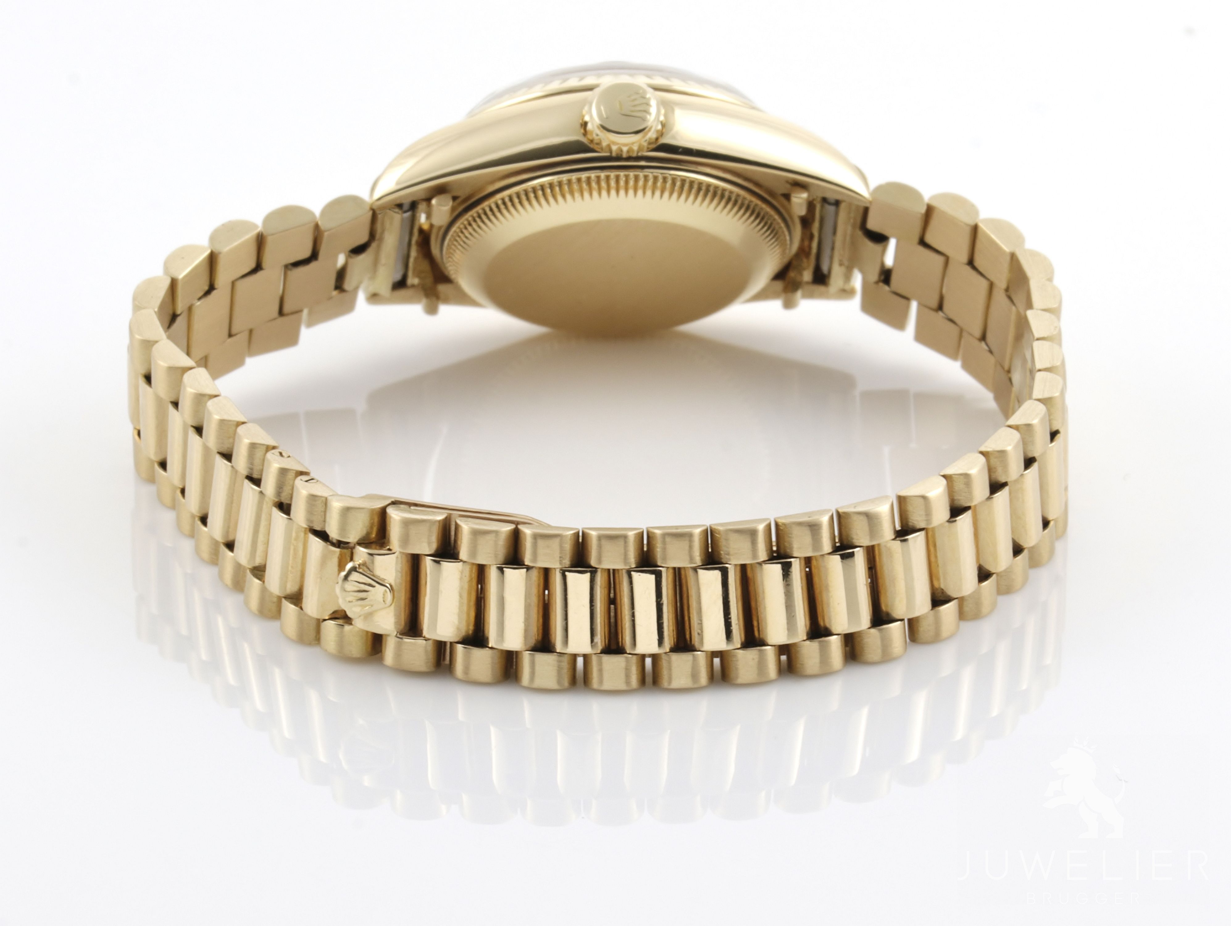 Presidentband aus Gelbgold mit Faltschließe, Bandanstöße wurden an das Gehäuse angepasst - max. Länge ca. 165mm, verstellbar, gemessen mit Gehäuse.